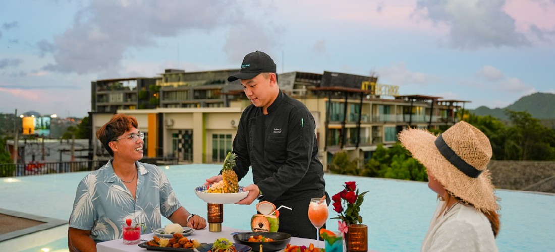 Swim and sip at The Lunar Sky Bar while enjoying panoramic views of Rawai Beach