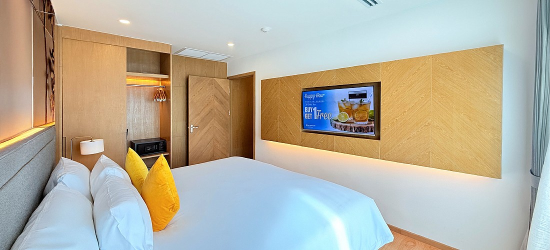 Built-in flat-screen TV, IPTV, smartphone mirroring on TV