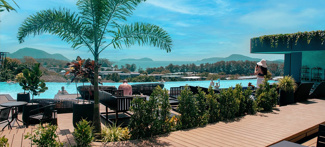Swim and sip at The Lunar Sky Bar while enjoying panoramic views of Rawai Beach