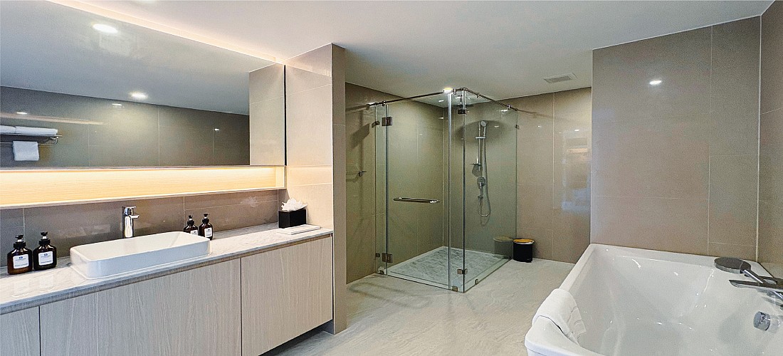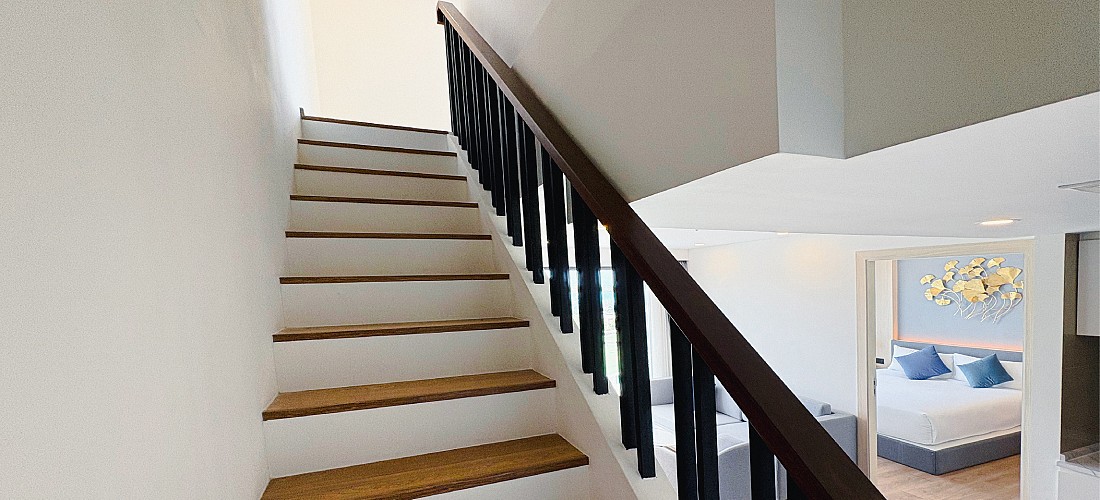 The Duplex Grand is ideal for families, with one master bedroom, one kid’s bedroom and ensuite on each floor. Balconies run the length of the suite, sweet for taking in those sunsets.